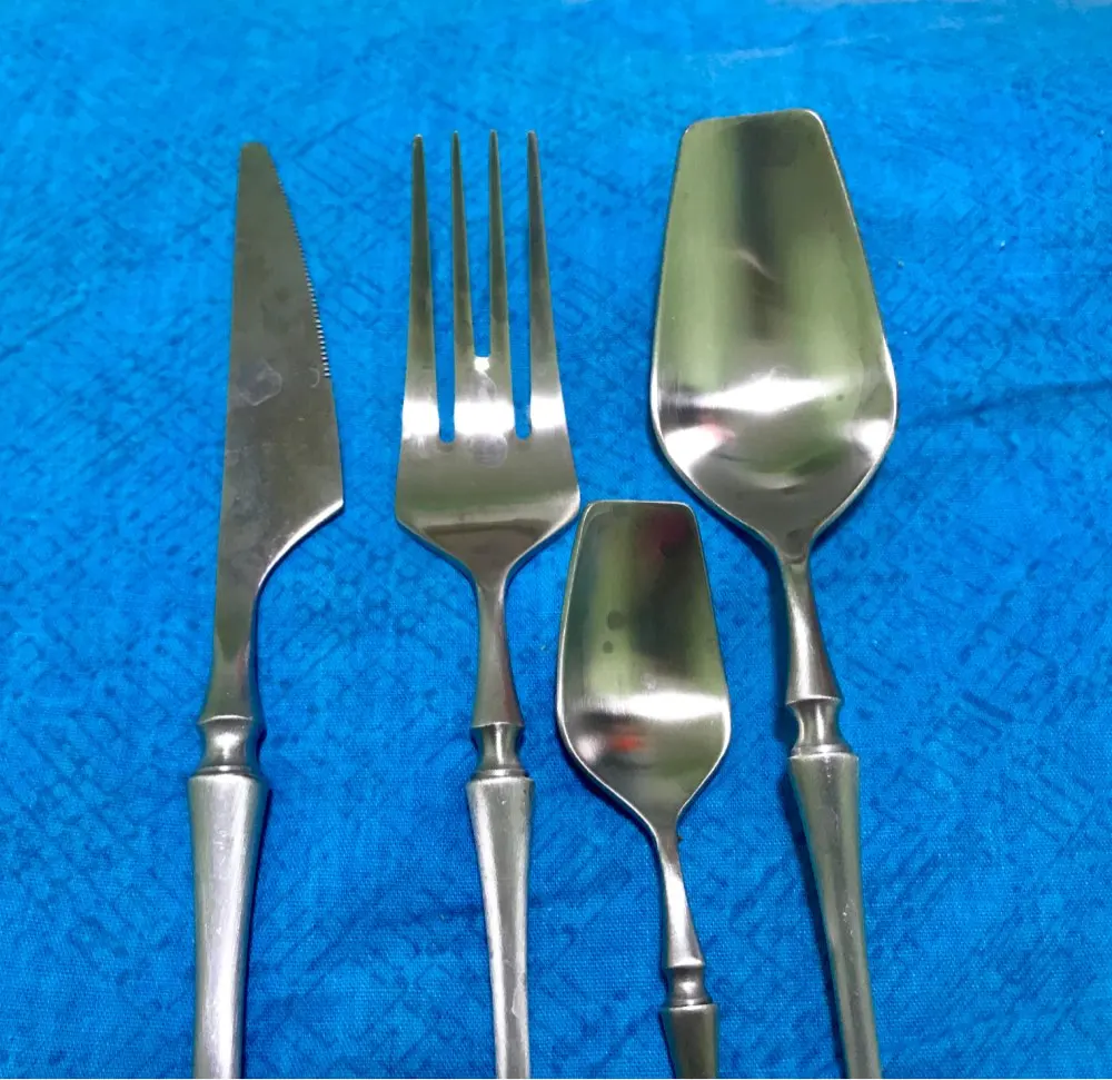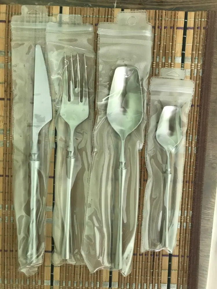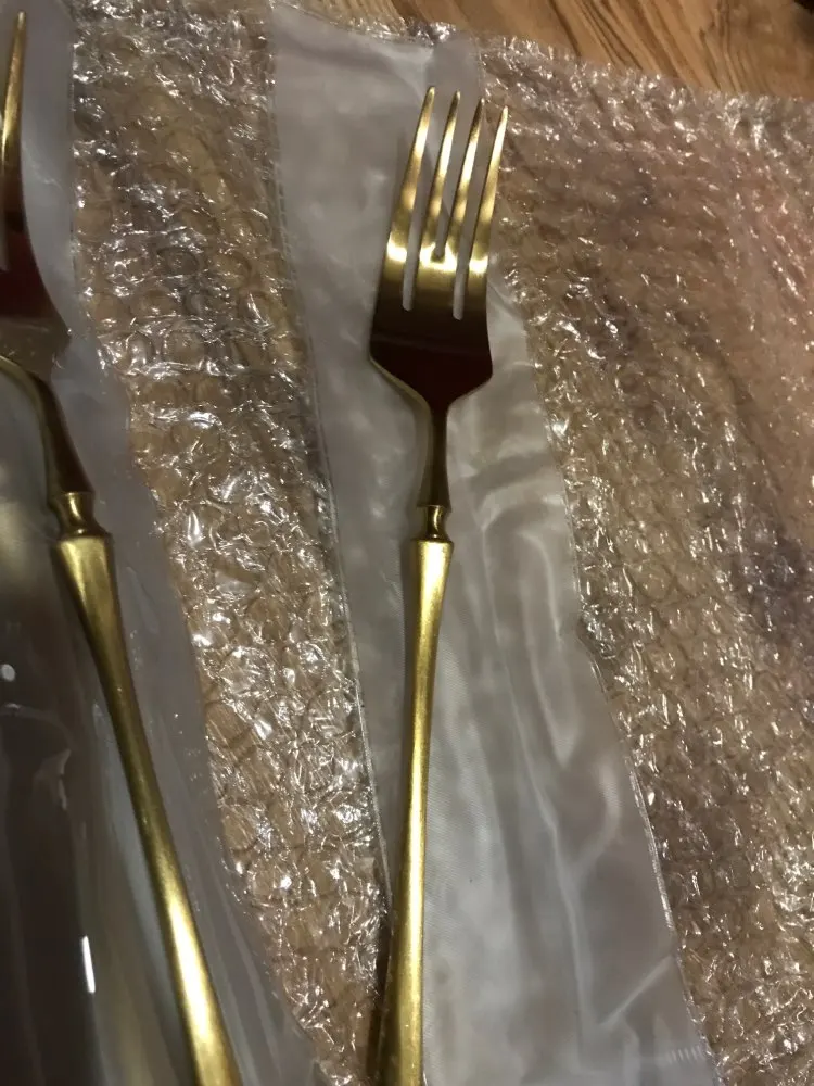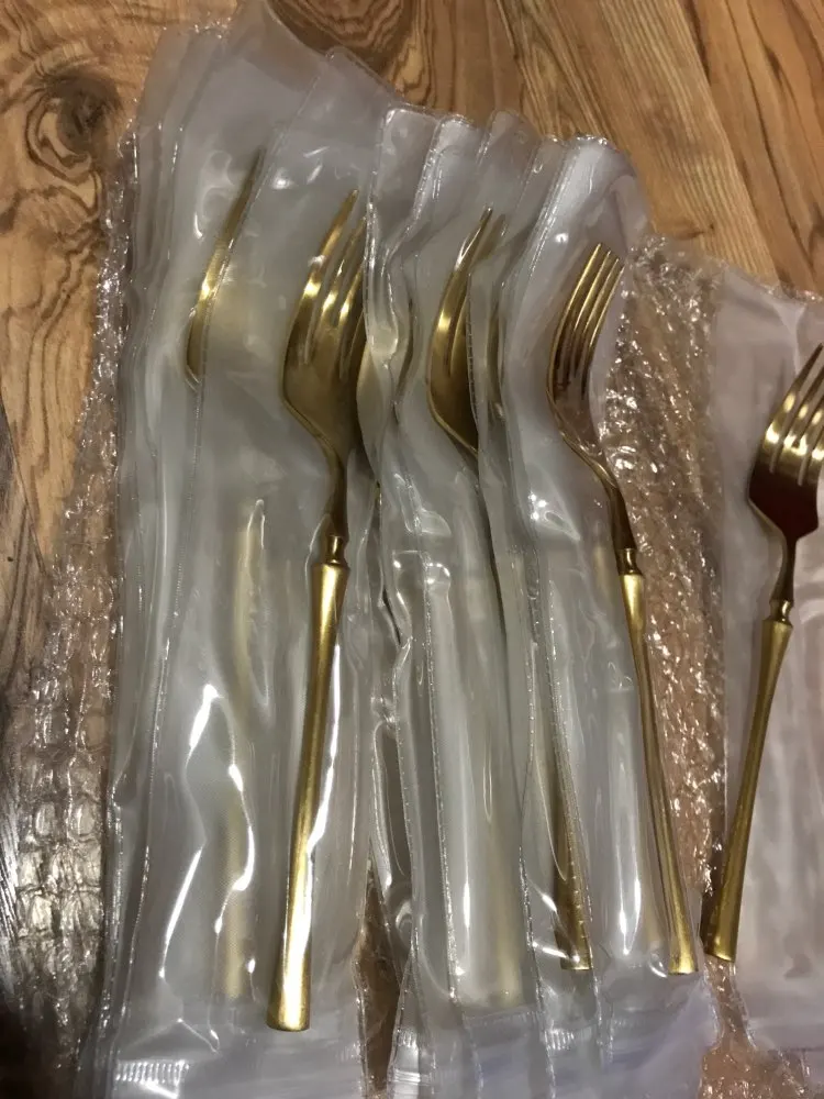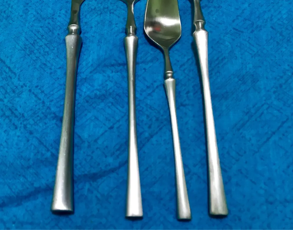 I ordered 20.05, the courier brought home 11.06. I took a set of 4 instruments of silver color (silver matte!!!). To the dining room, you need to get used to and adjust, with a tea easier. If at the same time there is a fork and a knife, then you need to adapt to the capture because. They are thin and round not always comfortable to hold, but otherwise like ordinary classic appliances. I do not know how to glossy, and these immediately visible spots and scratches (well, if you look at and consider)... While i'm happy with the purchase, let's see how long they can keep a presentable look at frequent exploitation.