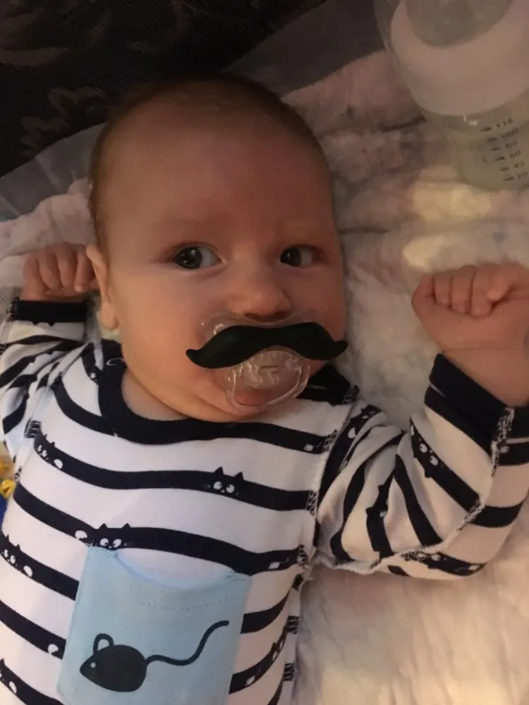 Cute baby mustache pacifiers designed especially for adorable babies to look even more adorable. These pacifiers make a perfect baby shower gift for small boys or girls! Our cute mustache pacifiers are made with the highest level of food grade silicone, they are BPA-free, latex-free, phthalate-free, PVC-free, and FDA approved. Conforms to all pacifier safety requirements. So the baby can safely chew these pacifiers.
