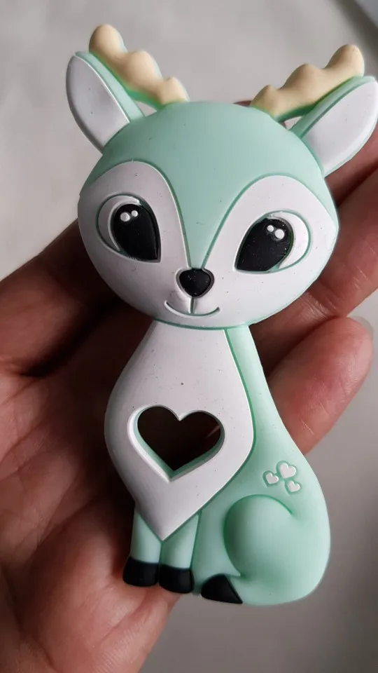 Perfect size and easy-grasp design for your baby to hold and manipulate.The silicone food grade teether is designed to be an attractive teething toy for toddlers.